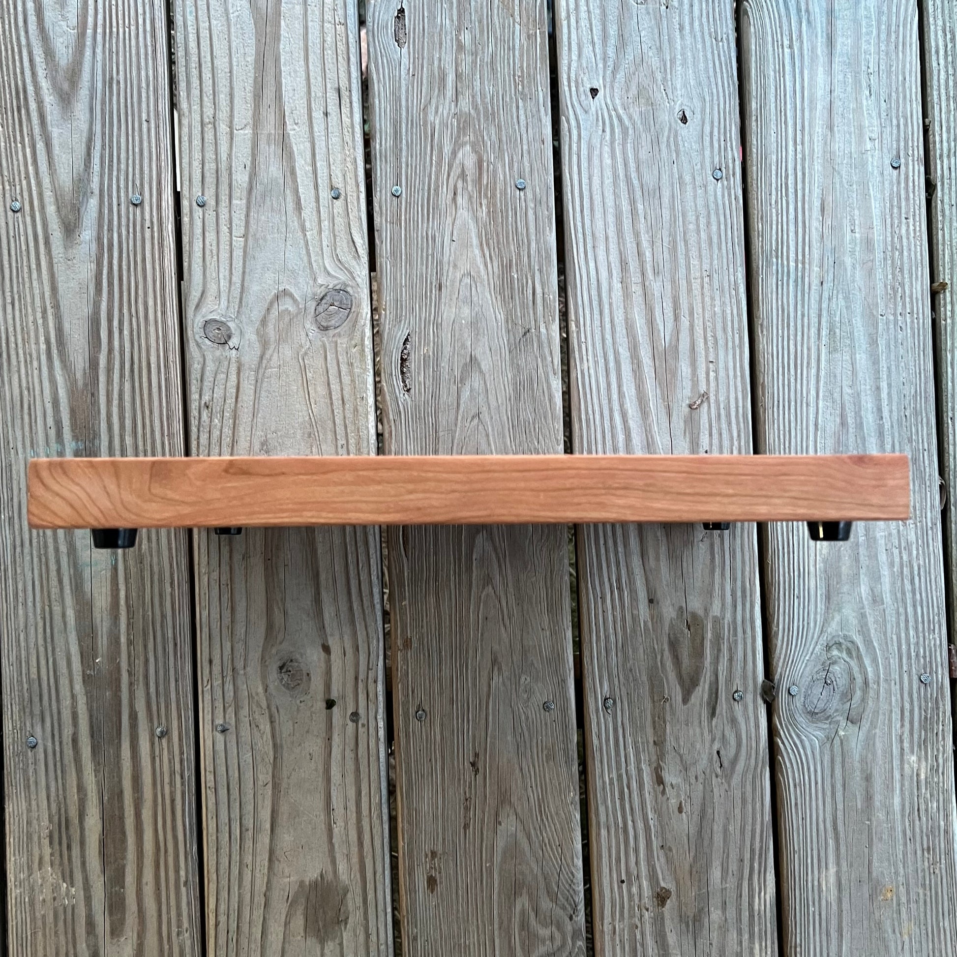 This beautiful striped cutting board is made from edge grain cherry and walnut. The beautiful cherry will darken with age and blends perfectly with the dark grain of the walnut. Edge grain is a lot easier on your knife blades and will also help ensure that it won't warp. Has rubber feet that will help with stability and is big enough to take on some of your larger cutting tasks.